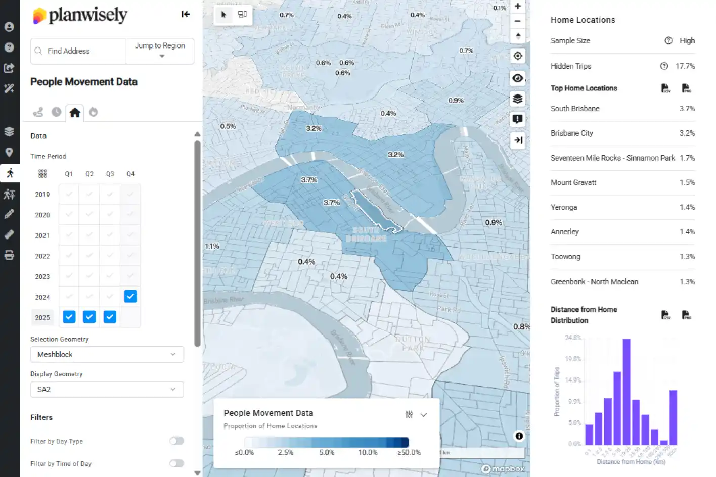 Planwisely's People Movement Data aggregates overall movements and dwells, which means it can visualise travel behaviours and visitation patterns.